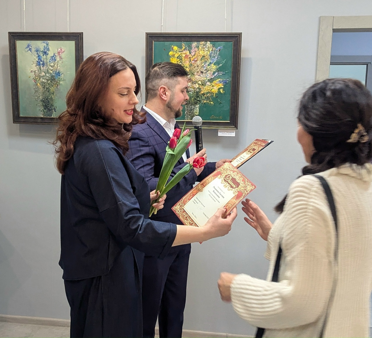 В завершение вечера, в преддверии 8 Марта, каждой гостье-участнице выставки был подарен нежный тюльпан — символ наступающей весны. Выражаем глубокую благодарность всем авторам за участие, ценим каждого художника и ту творческую атмосферу, которую вы создаёте вместе с нами.