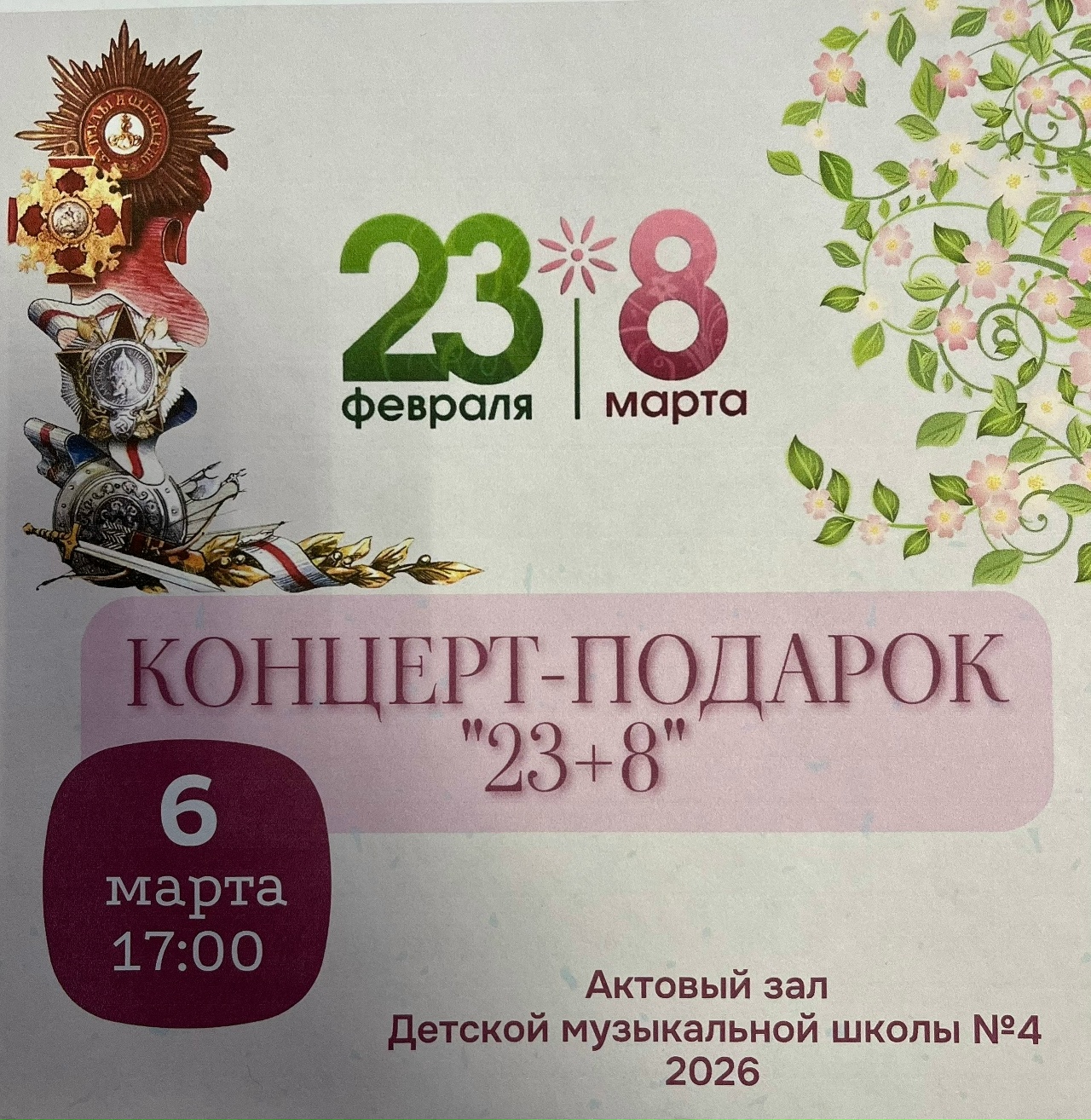 Детская музыкальная школа № 4 приглашает на концерт, посвященный двум праздникам: День Защитника Отечества и Международный женский день